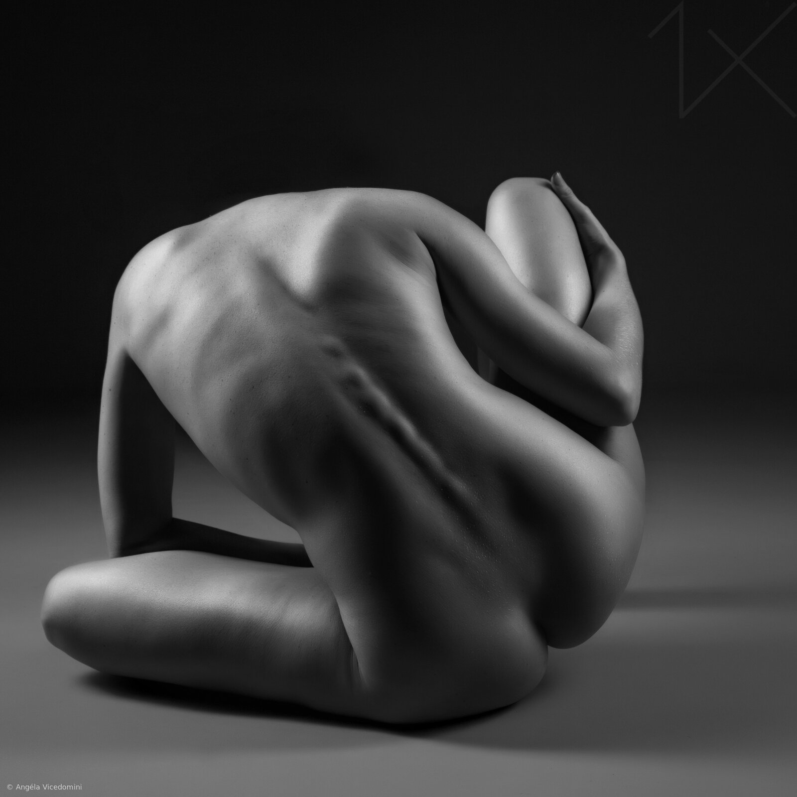 Angéla Vicedomini's exclusive use of black and white is not for nostalgic or stylistic purposes. It functions as a form of discipline, eliminating distraction and forcing every curve, shadow, and highlight to carry meaning. Skin becomes sculptural, defined by contrast, and the absence of color intensifies textures and shape, allowing the light to carve the body with precision.
